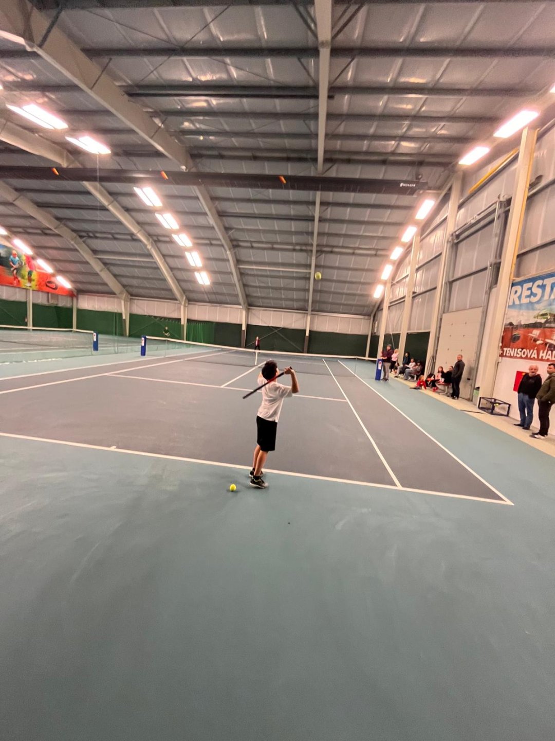 Tenisový turnaj starších žáků nabídl napínavé momenty i velice vyrovnané zápasy. Proto se poslední dva zápasy o stupně vítězů dohrávaly s týdenním odkladem 13. 12. 2025 a první místo získal mladý tenista Ferenc Nanasi.